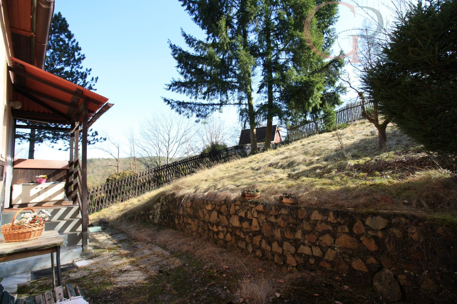 Chata stojí na pozemku o výměře 30 m2 a patří k ní též vlastní zahrada o výměře 336 m2.